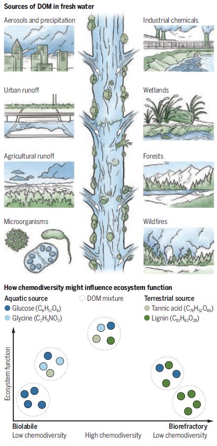Research increasingly suggests that the health of lakes, rivers and other fresh waters is closely tied to the diversity of dissolved organic matter (DOM). DOM consists of thousands of distinct carbon-based compounds from different plant and animal sources, which make up what scientists call “chemodiversity.”